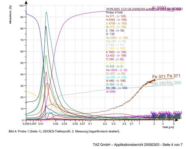Schlötter also had an XRF and GDOES analysis carried out at TAZ GmbH in Aichach. A polished and a brushed aluminum sheet were each examined after passivation. The aim was to evaluate the influence of the mechanical pre-treatment on the formation of the conversion layer.